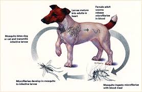 เกิดจากพยาธิที่มีตัวยาวมาก อาศัยอยู่ใน หัวใจท้องล่างขวา ถึงเส้นเลือดใหญ่ไปที่ปอด ติดต่อได้โดยมี ยุง เป็นพาหะนำเอาตัวอ่อนของพยาธิในระยะติดต่อ ปล่อยลงไปที่ตัวสุนัข สุนัขที่ป่วยเป็นโรคนี้มักได้แก่สุนัขที่มีอายุ 3 - 5 ปีขึ้นไปพยาธิชนิดนี้ถ้ามีมากจะทำให้กล้ามเนื้อหัวใจทำงานหนัก และ ขยายตัวสุนัขจะมีความผิดปกติที่หัวใจแสดงอาการไอแห้งๆ ไม่มีแรงนอนซม อาจจะมีอาการท้องมาร ตัวซีด หมดแรงล้มตายไปดื้อๆ
